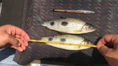 O homem iniciava a pescaria e no local foram apreendidos: 3 kg de pescado, por haver exemplares abaixo da medida permitida (crime ambiental), três boias e um anzol de galho (petrechos proibidos), um motor de popa, um barco e uma carretilha com vara. O infrator foi autuado administrativamente e foi multado em R$ 1.060,00.
