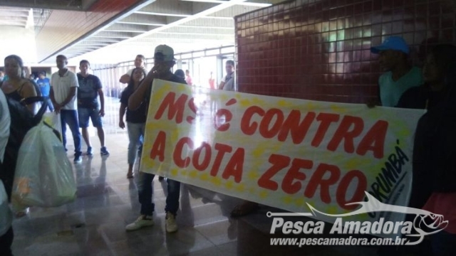 Segundo a Polícia Militar (PM), cerca de 500 pessoas, entre proprietários de empresas que exploram o turismo de pesca, donos de pousadas, pescadores profissionais – que vendem iscas e pescadores amadores, entre outros, de pelo menos quatro cidades: Corumbá, Miranda, Bonito e Porto Murtinho, protestaram em frente a sede do governo sul-mato-grossense. Com faixas e cartazes eles se posicionam contra a “cota zero”.
