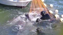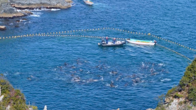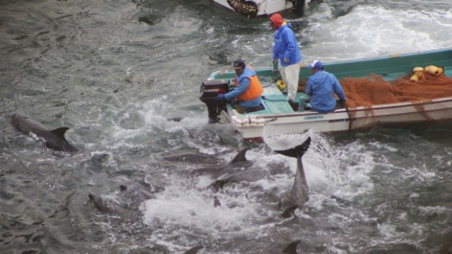 Os grupos disseram que os pescadores da cidade costeira do Pacífico violam rotineiramente leis de bem-estar animal e excedem as cotas de pesca estabelecidas pelo governo. A Action for Dolphins descreveu as caçadas por tração, nas quais as vagens são levadas do mar aberto para uma enseada estreita, com “excepcional crueldade”. Dizia que os animais morrem uma morte lenta e dolorosa.