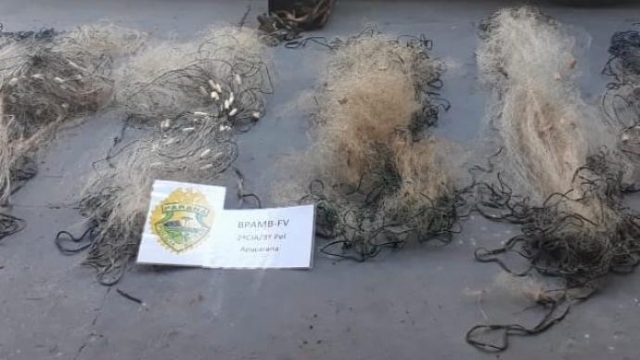 Segundo a PMA, a ação ocorreu em patrulhamento pela região da Ilha das Palmas, no Rio Ivaí, no distrito de Jussiara, quando os dois foram flagrados verificando o material predatório.