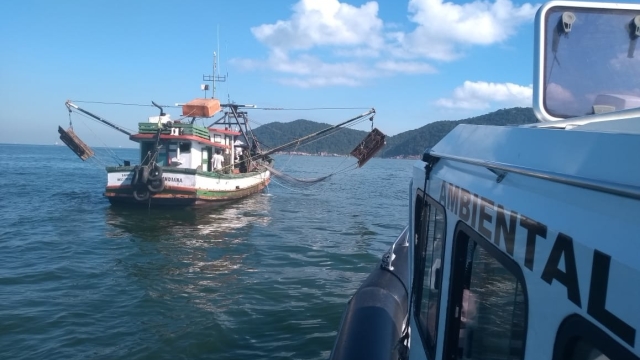 Policiais Militares da CIAMAR, a Companhia de Policiamento Ambiental Marítimo do 3° Batalhão de Polícia Ambiental do Estado de São Paulo, durante patrulhamento marítimo pelo município de Guarujá e cidades vizinhas do Litoral do Estado de SP, surpreendeu uma embarcação pesqueiras realizando a prática de arrasto, sem o TED (Turtlhe Excluder Device) Dispositivo de Escape de Tartarugas.