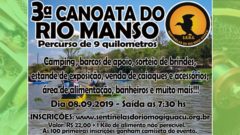 A 3ª Canoata do “Rio Manso” acontecerá no dia 08 de setembro, partindo do Rancho Beira Rio Eventos, no Bairro Roseira no município de Mogi Guaçu (SP) em um percurso de 9 km de extensão. A ação tem como objetivo mobilizar, sensibilizar e incentivar os participantes para contemplar a beleza natural e a valorizar a importância do Rio Manso nos seus aspectos socioambiental e cultural.
