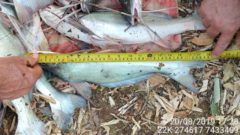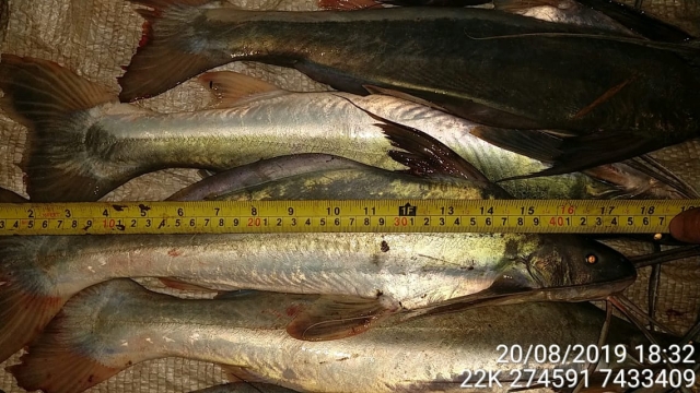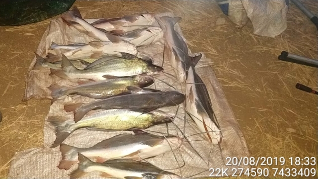 No total, foram apreendidos 46 kg de peixes da espécie barbado, 03 varas com molinetes e 3 varas com carretilha e um puça. Os infratores receberam 6 autos de infração sendo, 4 AIA no valor de R$ 1.240,00 cada e 2 no valor de R$ 1.080,00 cada, totalizando R$ 7.120,00 em multas