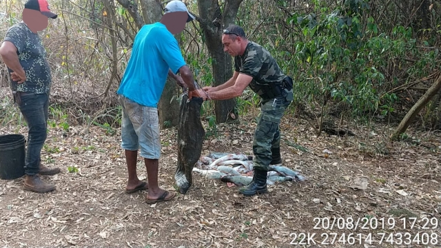 Segundo a equipe, a ação ocorreu após receberem uma denuncia anônima por volta das 17:30, dando informações sobre a prática ilegal, quando se deslocaram para o trecho citado, visualizado vários pescadores com botes de madeira pescando.