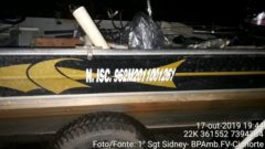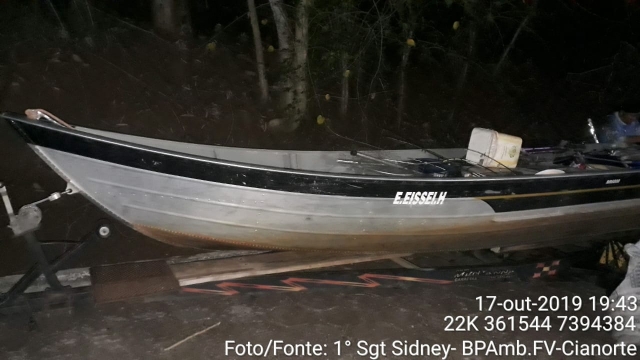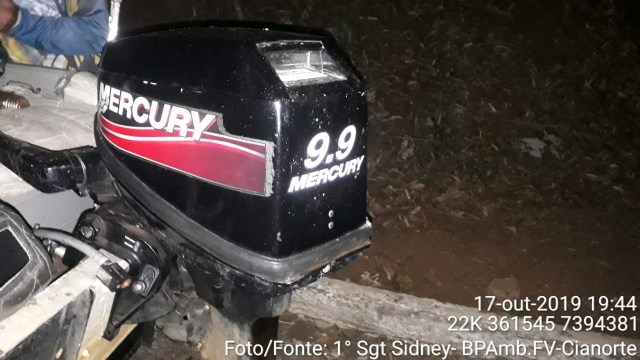Diante da irregularidade constatada, foi apreendido o pescado, e todo o equipamento e apetrecho utilizado na prática da infração ambiental, sendo uma embarcação de alumínio de 6 metros, 6 caniços com molinetes e carretilha e 01 motor de popa de 9.9 HP.;