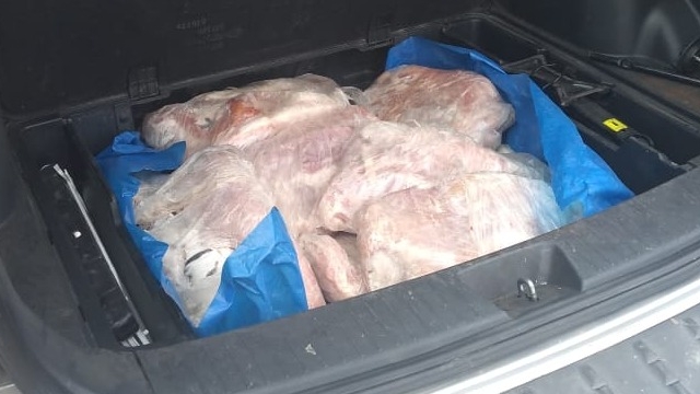 A Polícia Militar Ambiental de Corumbá (MS) em ação conjunta com a Polícia Rodoviária Federal apreendem nesta quinta-feira (3), 45 kg de filé de pescado ilegal que estavam escondidos no compartimento de estepe no porta-malas de um veículo Kia Sportage com placas da Bolivia abordado na rodovia Ramão Gomes, BR-262.