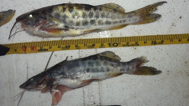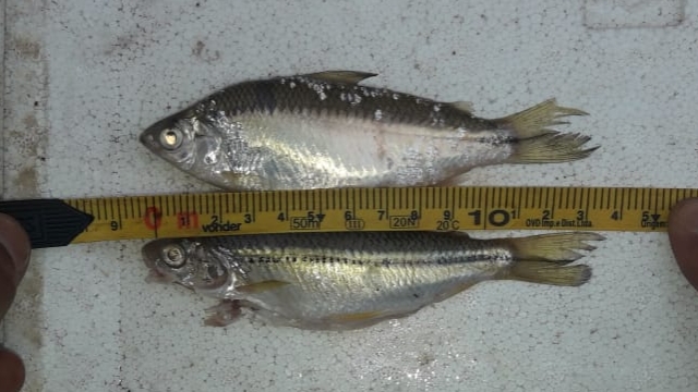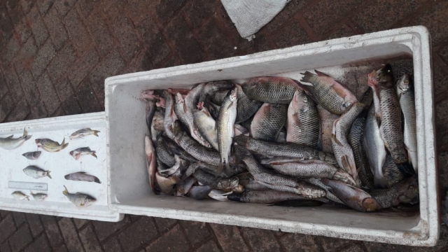 Ao serem questionados a respeito da autorização de pesca, ambos afirmaram que não possuíam. Durante a vistoria, ficou constatado que os infratores haviam capturado diversos exemplares peixes fora da medidas que pesaram 12,780 kg.