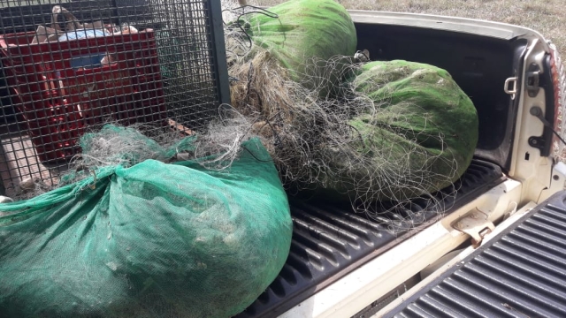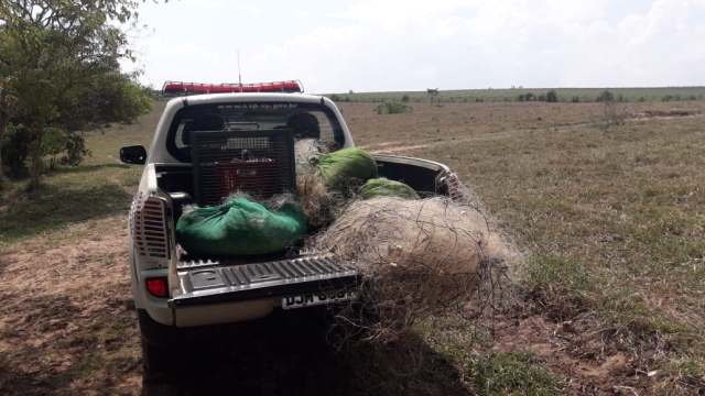Ainda durante a operação, a equipe recolheu cerca de 1.000 metros de redes utilizado para pesca ilegal sem plaquetas de identificação de diversas medidas, entre elas várias medidas não permita , sendo que por não localizarmos o proprietário foi apreendido.