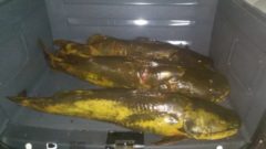 Um peixe pesava 21 quilos e media 1,19 metro, o outro, de 16 quilos, media 1,14 metro, enquanto o terceiro pesava 15 quilos e media 1,10 metro. Os peixes não estavam congelados e apresentavam características de que teriam acabado de serem esviscerados, segundo a polícia.