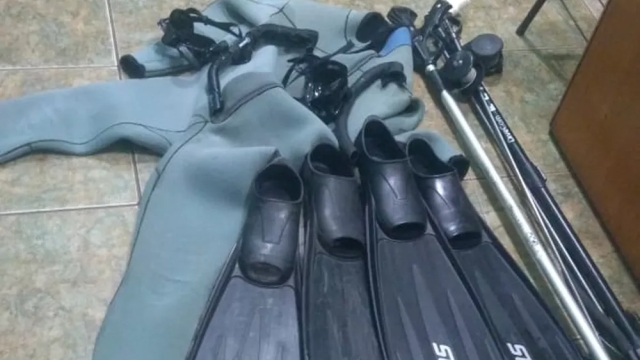 Ainda foram apreendidos dois arbaletes, duas máscaras de mergulho, dois pares de nadadeiras e uma roupa de mergulho.