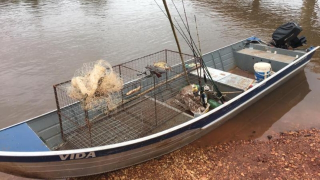 No mesmo rio, no município de Rio Brilhante (MS), outra equipe prendeu um homem de 42 anos, também por pesca predatória e por porte ilegal de arma. Ele estava em uma embarcação atracada à margem do rio e no acampamento dele foram encontradas duas redes de pesca, duas tarrafas em uma fisga (petrechos proibidos) pertencentes ao infrator, bem como cinco exemplares de peixes da espécie curimbatá e um piau-três-pintas.