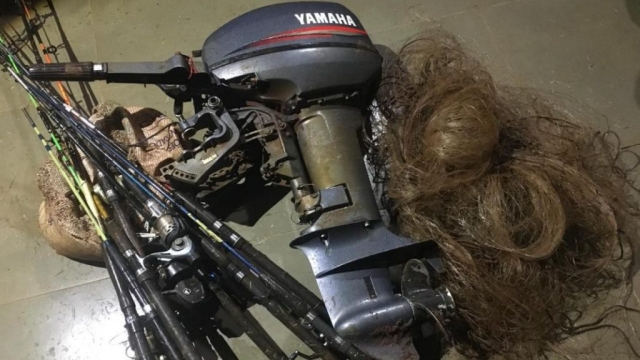 Efetuada a abordagem, ainda havia dois peixes da espécie armal e mandi mortos. Em busca na embarcação a equipe encontrou um revólver calibre 32 e cinco munições, para os quais o infrator não possuía documentação. No local onde o homem estava acampado também foram encontrados: uma tarrafa, uma fisga (petrechos Proibidos) e um viveiro que é utilizado para colocar dentro do rio com peixes capturados.