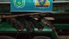 Além de tudo, como a cota de captura e abate por pescador amador é de apenas um exemplar de peixe nativo e cinco exemplares de piranhas, o infrator havia capturado pescado acima da quantidade permitida, o que também é crime. Foram apreendidos 18 kg de pescado, um barco, um motor de popa com tanque e dois arpões.
