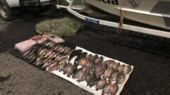 De acordo com a polícia, com o auxílio de binóculos, foi possível avistar quando os infratores praticavam pesca predatória conhecida como “batida”. Um deles é pescador profissional, já os outros dois, pescadores amadores.