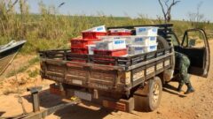 Durante a abordagem, a PMA constatou que o grupo transportava peixes da espécie Cuirimba, sendo todos os exemplares abaixo do tamanho mínimo exigido por Lei, conforme Instrução NormativaI BAMA 26 de 2 de Setembrode 2009. Todo o pescado estava sendo transportado sem nenhum cuidado sanitário e expostos ao sol.