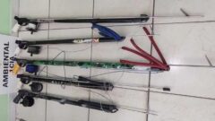 Em seguida, dois rapazes de 24 anos surgiram, também portando arpões e, na embarcação, os policiais encontraram 12 peixes abatidos da espécime Cavala, totalizando 10 kg. Diante da situação, os dois adultos foram presos e o menor apreendido pela prática de pesca em local proibido.