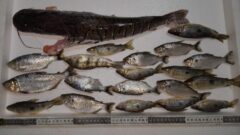 Em uma das abordagens, os policiais realizaram a abordagem de uma caminhonete, onde o suspeito estava transportando 42 quilos de pescado irregular na carroceria do veículo. Mais 26 quilos de pescado irregular foram apreendidos em outra abordagem, sendo os peixes encontrados no interior de uma embarcação que o suspeito rebocava em seu veículo.