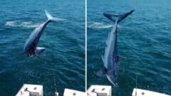 O exemplar em questão é o mako, considerado a espécie de tubarão mais rápido do mundo. O episódio aconteceu na costa de Massachusetts, nos Estados Unidos.