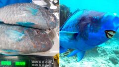 Durante uma operação de fiscalização, agentes da Polícia Militar Ambiental Marítima identificaram a venda de peixes da espécie Scarus trispinosus, popularmente conhecido como peixe-papagaio, em um estabelecimento comercial de Santos no litoral de São Paulo.