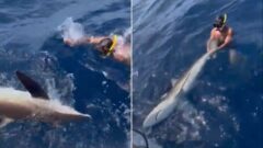 Mesmo com o cenário desfavorável, Rosenhaus conseguiu voltar para o barco com todos os seus membros intactos. Assista o vídeo abaixo: