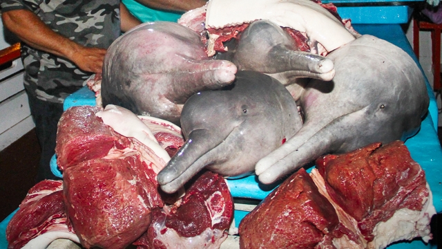 Uma das maiores ameaças aos botos é que eles são mortos para serem usados como isca na pesca da piracatinga, um peixe bagre que se alimenta de carcaças.