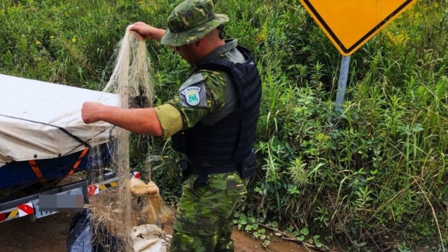 A equipe do 3º BABM abordou os automóveis e identificou os três ocupantes. No interior dos veículos, os policiais encontraram redes de pesca, “boias-loucas” (material artesanal usado na pesca predatória) e diversos peixes das espécies Traíra, Jundiá e Cará, já enviceirados.