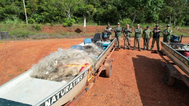 Para combater a pesca pesca ilegal, conforme previsto na Portaria Conjunta nº 04/2023, o Instituto Natureza do Tocantins (Naturatins) finalizou nessa quinta-feira, 4, uma operação de fiscalização ambiental no Lago da UHE de Estreito. A ação teve início no dia 26 de março e resultou na apreensão de 6,3 metros de redes de pesca, 70 quilos de pescado, uma espingarda calibre 20, uma munição intacta, 12 cartuchos deflagrados, seis espinheis, quatro tarrafas, além do resgate de um animal silvestre.